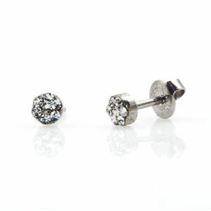 Arete de uso temporal básico único diseño elaborados en acero inoxidable hipoalergénicos. Deben retirarse a los dos meses después de la perforación y cambiarlos por los de uso permanente.
